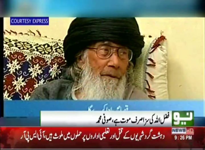 مولوی فضل اللہ خوارج سے بھی بدتر ہے۔ پاک فوج کے ساتھ لڑنا حرام ہے۔ مولانا صوفی محمد
